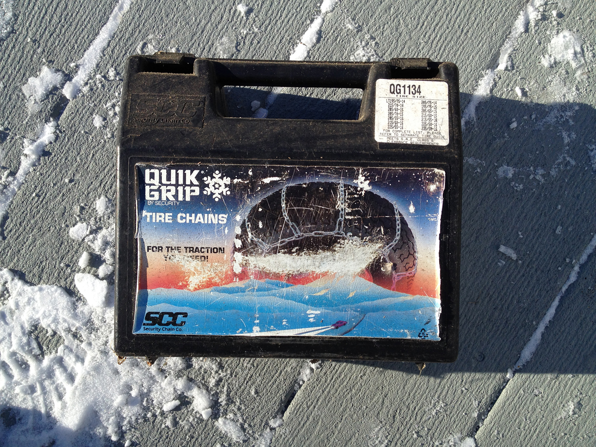 Two different sets of tire chains for sale. One set is very heavy duty and never actually used. Lightly rusted from hanging in the barn. Ideal for a large pickup truck or small tractor (80" long, with hardened cross chain every 3").
