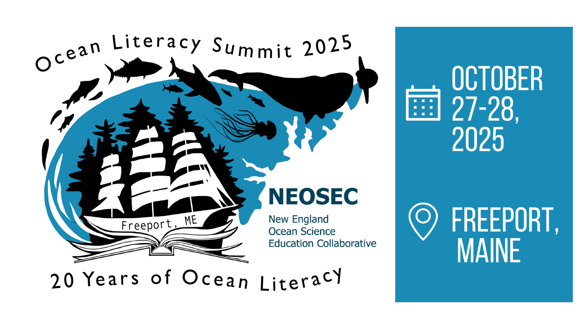 Registration is open for the tenth biennial New England Ocean Science Education Collaborative (NEOSEC) Ocean Literacy Summit: Knowing the Ocean: 20 Years of Ocean Literacy. The event will take place in Freeport, ME, on October 27 – 28, 2025 at the Harraseeket Inn. We will increase understanding and dialogue in New England around the Ocean Literacy Principles. The Summit will focus on connecting scientists, educators, and community leaders to critically think about equitable collaboration, share best practices, and provide networking opportunities. Early bird registration is open through September 22!