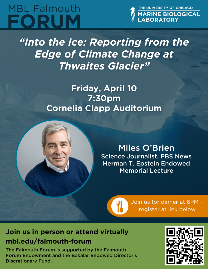 [Classifieds] MBL Falmouth Forum Tomorrow Night! “Into the Ice: Reporting from the Edge of Climate Change at Thwaites Glacier” Miles O'Brien, Science Journalist